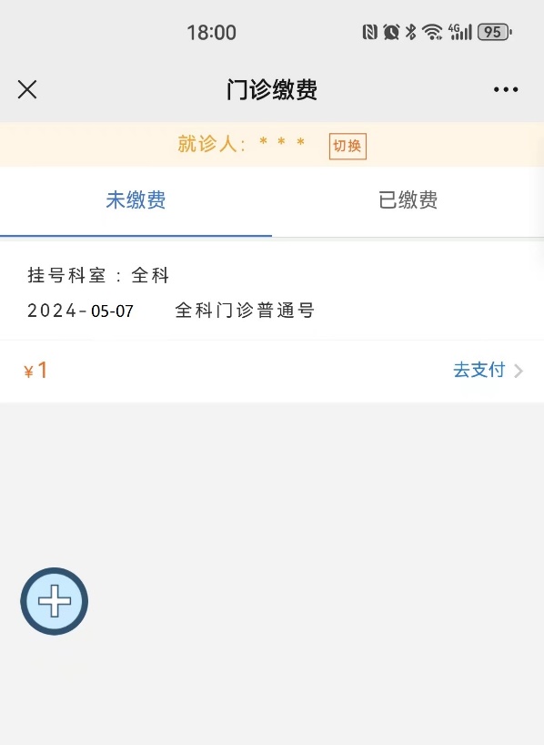 提示:上述应收金额在实际支付界面会按照患者类型调整为自费部分应付金额(例如,挂号费应收20元,在校医院享受公费医疗的退休人员实际支付时会调整为实收1元)。