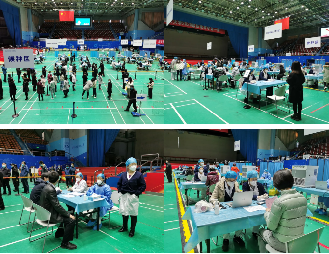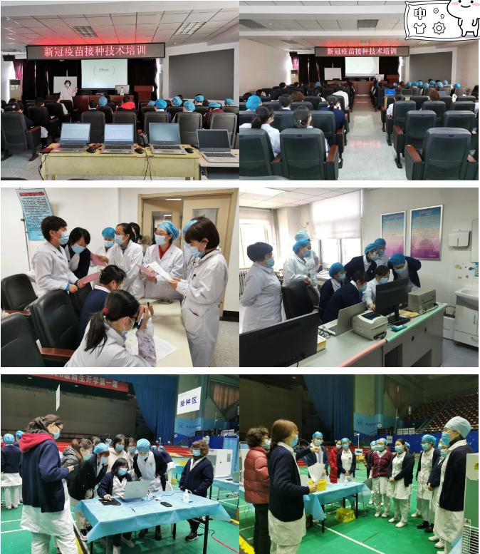 大年初八,首批参加疫苗接种的职工全部结束假期到岗参加为期两天的接种技术培训,通过专业讲座、分组讲解和体育馆现场练习,充分掌握接种技术和工作流程。同一时间,相关科室和部处负责同事同步进行场地布置、防疫急救物资设备准备和环境消杀准备,当天顺利通过卫生监督所场地验收。
