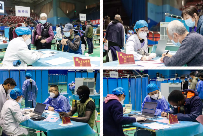 3月28日的接种任务复杂繁重,要完成近四千人的接种量,并且接种对象年龄跨度大,60岁以上的老年人达600人,要为港澳台和外籍师生手动登记信息,要为第一批还没有接种第二针的师生接种,涉及到60岁以上和以下混合、中国籍和外籍混合、第一针和第二针混合、双品种混合等多重混合接种。在现场的八组接种队伍中,有三组全部由党员和积极分子组成,承担着最为复杂的接种任务,大家耐心细致,确保无差错,并且全天无休,坚守到最后一刻,顺利完成当日接种任务,体现了校医院党员们在关键时刻勇于担当,用实际行动践行初心使命!