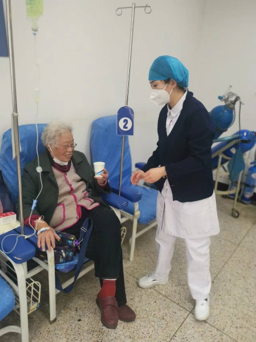 护理工作主要包括咨询服务就诊取号、静脉输液、肌肉注射、静脉抽血、外科换药、拆线、家医建档、慢病管理和评估、家庭治疗、心电图检查、吸氧、心电监护、急救、核酸采集等工作,她们积极推出“家庭病床”服务,让行动不便的老人、因病卧床的患者在家就能享受医疗服务。截至目前上门服务换药8次、静脉抽血5次、导尿1次,患者家属王老师说“老人家髋关节术后,行动不便来回折腾,现在,解决了他们的大问题,减少来回医院的劳累奔波和出行难问题,我们很放心,真的太感谢了”。