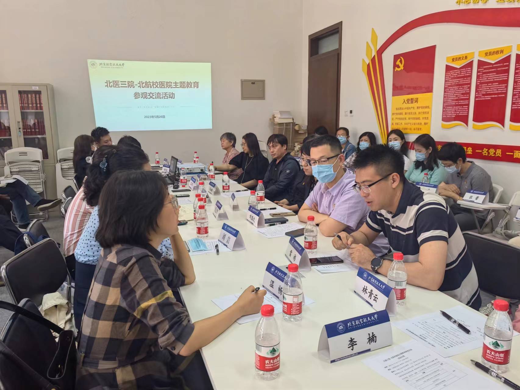 为深入开展学习贯彻习近平新时代中国特色社会主义思想主题教育,2023年5月26日,校医院与北医三院开展主题教育调研参观活动,北医三院工会常务副主席刘温文、监察室主任孙华一行到北航调研参观,北医三院门诊部、医保办和国内合作处等8个机关部处职工代表,校医院院班子成员、科室主任及职工代表参加活动。