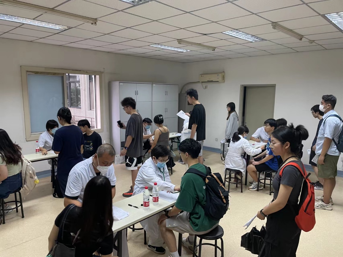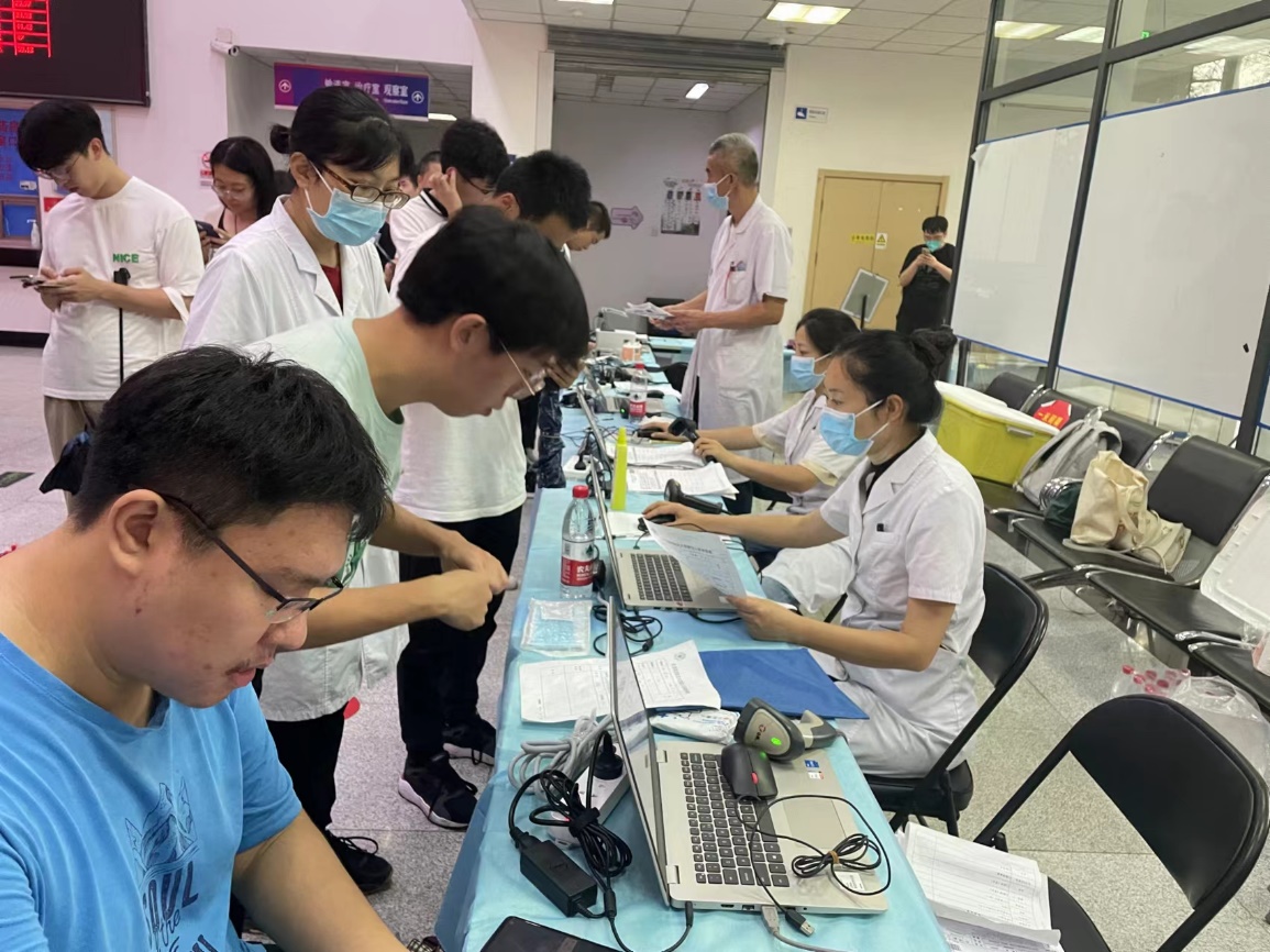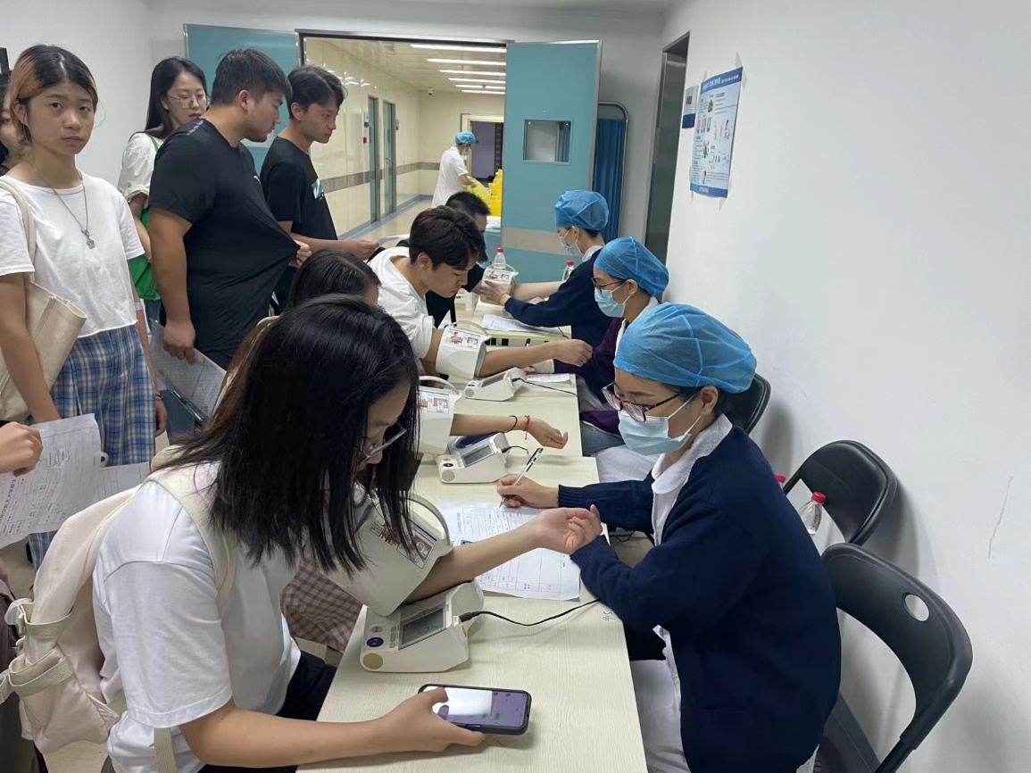 本次新生体检工作时间紧、任务重,校医院高度重视,多次召开体检工作部署会议,对体检各环节和人员进行周密安排,根据体检现场条件合理规划场地,优化体检流程;全力保障体检工作力量,对参检的医务人员点对点培训,并首次运用新数字化技术实现一键式收表,有效减少新生等待时间。