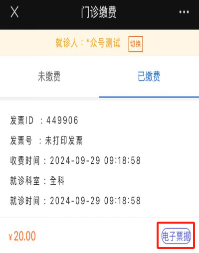 患者在缴费后可通过以下方式查询、下载电子票据:登录校医院线上服务系统,在“门诊缴费→已缴费栏目→电子票据”里查看到对应的电子发票,在发票详情页可选择长按图片保存至手机。