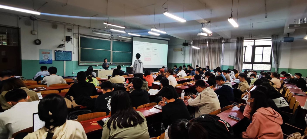 课堂现场,董艳华老师通过引入案例、理论讲授与救护技能实操相结合的方式,向同学们详细讲解了救护概念、心肺复苏操作、常见突发事件的处理方法等方面的救护知识。利用模拟人向同学们演示了心肺复苏(CPR)和自动体外除颤仪(AED)操作使用方法,并指导同学们现场进行模拟急救操作。通过培训,同学们纷纷表示学到了十分实用的急救技能,对自己及身边的人来说都多了一份应急救护的保障。