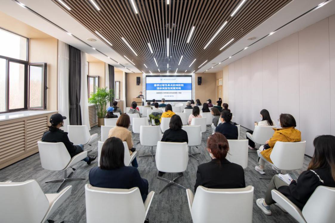 为帮助老师们有效预防和缓解过敏性鼻炎,3月7日下午,由校医院、教师发展中心、党委教师工作部、校工会共同主办的“春季过敏性鼻炎的预防和浅谈突发性耳鸣耳聋”的线下讲座在老主楼主605举行。本次讲座邀请了首都医科大学附属北京佑安医院副院长蔡超教授作为主讲嘉宾。