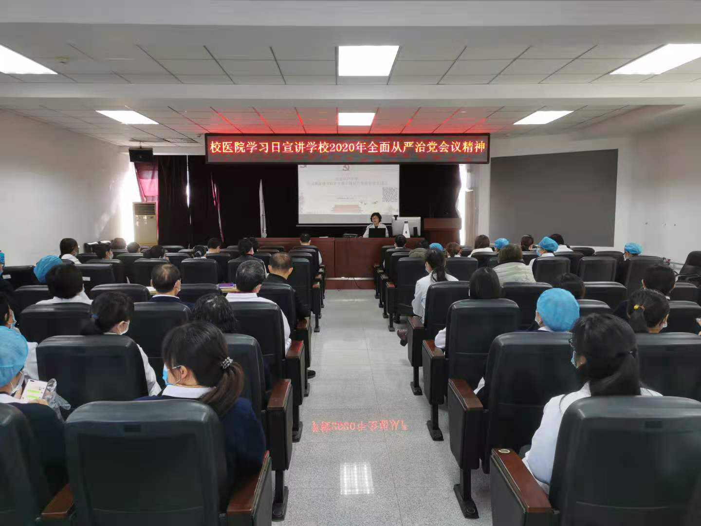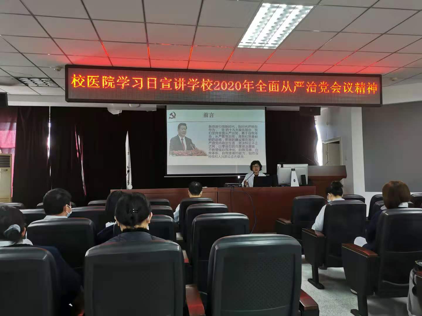 2020年11月27日,校医院“学习日”由曹丽娟副院长宣讲学校2020年度全面从严治党会议精神,医院全体职工参会。