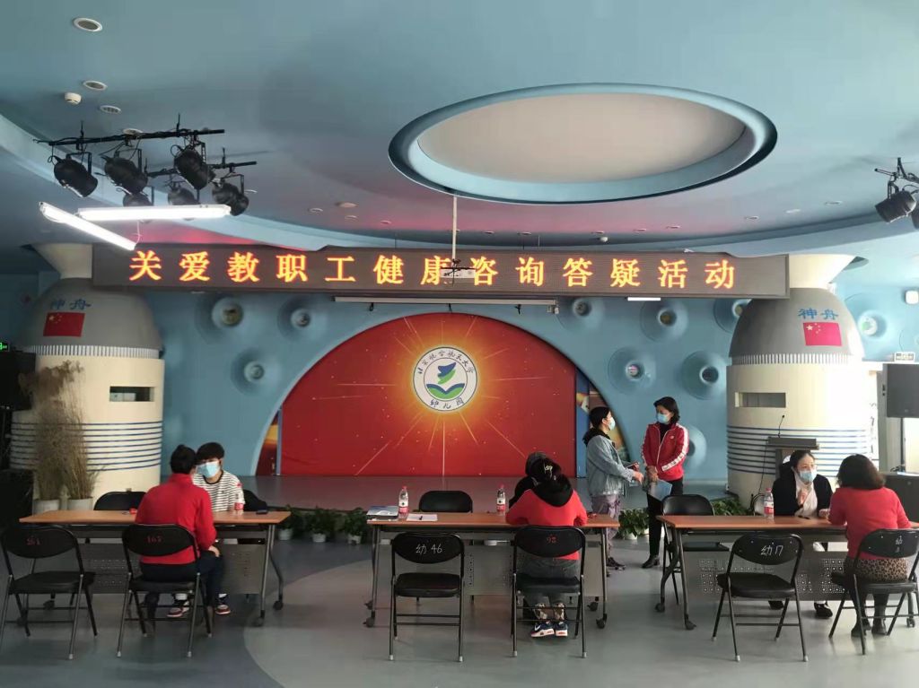3月9日和10日下午,校医院第一党支部组织医院妇儿中心、中医康复理疗科和检验科的6名党员分别走进图书馆和幼儿园做健康咨询,校医院党总支书记高静带队,各党员医生们通过仔细的问诊和辨证,为有不同需求的老师提供了健康咨询解答,康复建议和健康指导,并为老师们详细解读了体检报告和化验单结果,获得老师们的好评,3月11日,幼儿园教师代表为校医院送上“德艺双馨、温暖北航”锦旗。