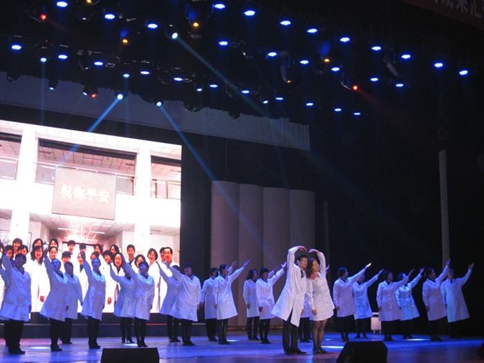 此次文艺汇演,校医院工会组织职工积极踊跃报名,组成小合唱队。大家热情高涨,利用休息时间,认真排练。演出当晚,合唱队身着白衣天使的服装,以饱满的热情和精彩的表演,为观众奉上悦耳动听的“祝你平安”小合唱,获得在场观众的一致好评,展现了医务人员的魅力和风采。