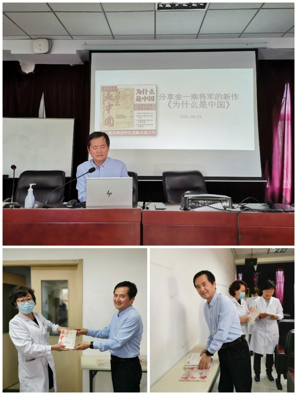 首先,由张新华院长介绍金一南《为什么是中国》一书的主要内容,并用深情的话语分享阅读感悟,读史明智,鉴往知来,中国从百年沧桑到民族复兴的辉煌道路值得我们深入学习和铭记,并自费向参加活动的职工赠送《为什么是中国》。